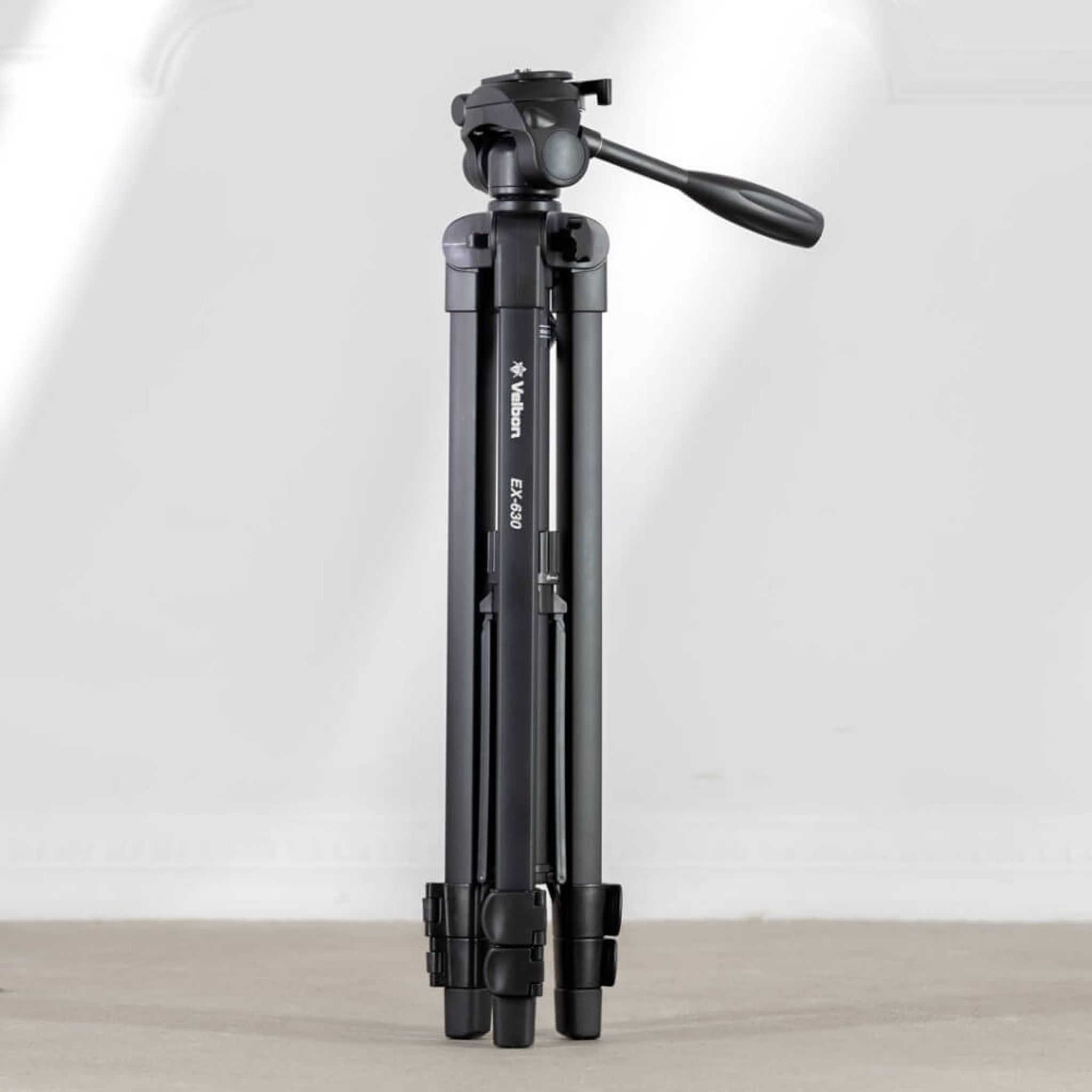 Velbon EX-630 är ett prisvärt kamerastativ som kan användas till både fotografering och filmning, eller för att montera monitor och fjärrkontroller på. Det levereras med en praktiskt förvaringsväska med inbyggd bärrem.