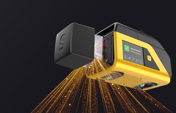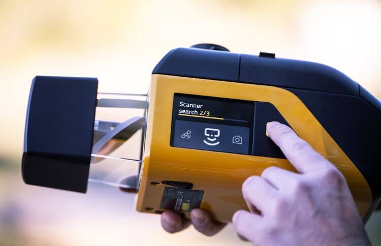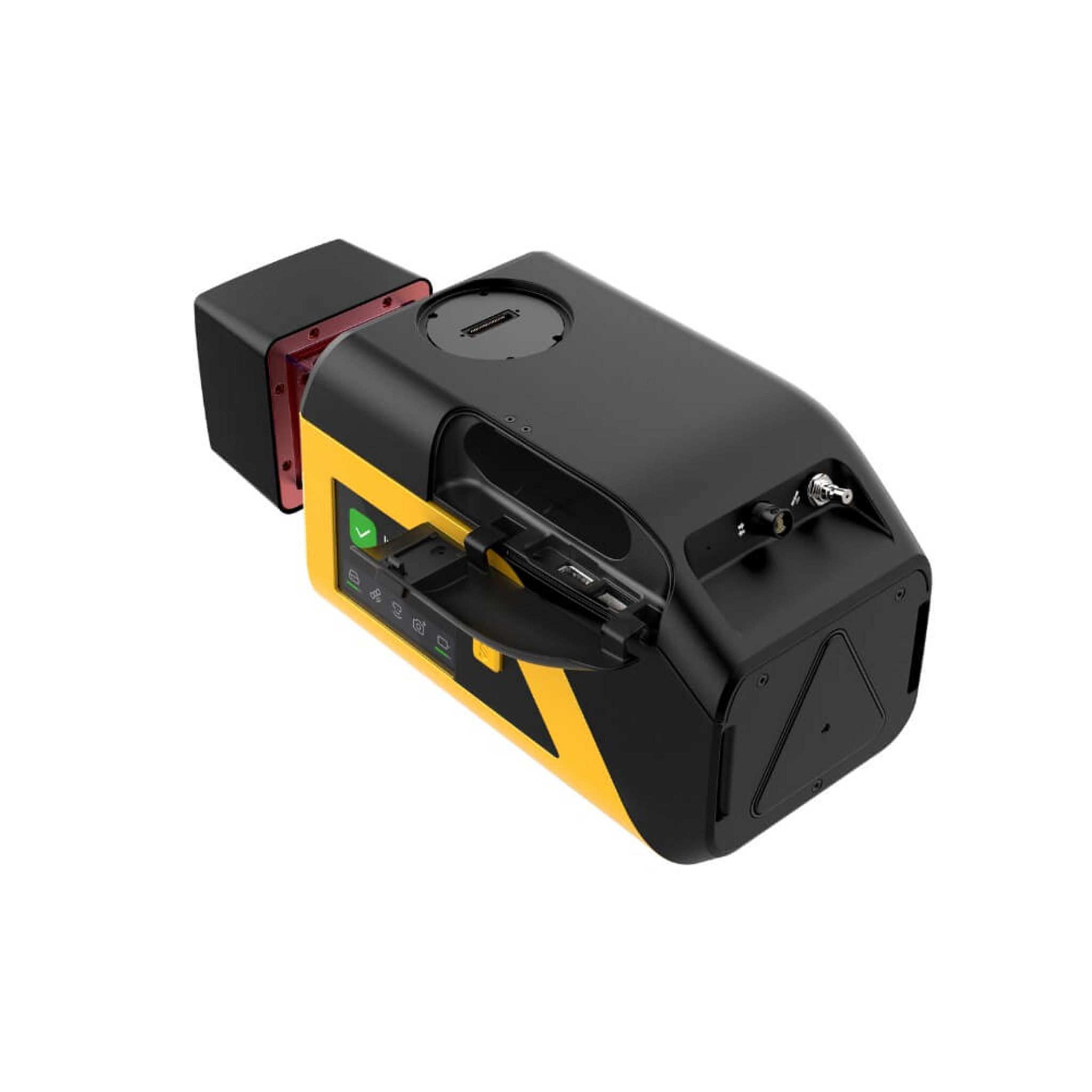 På vänster sida av Venturer har den en helt ny HMI display (Human Machine Interface) som låter dig konfigurera och starta/stoppa scannern i samband med uppdrag. Du ser status på batteri, GNSS och återstående lagringsplats.